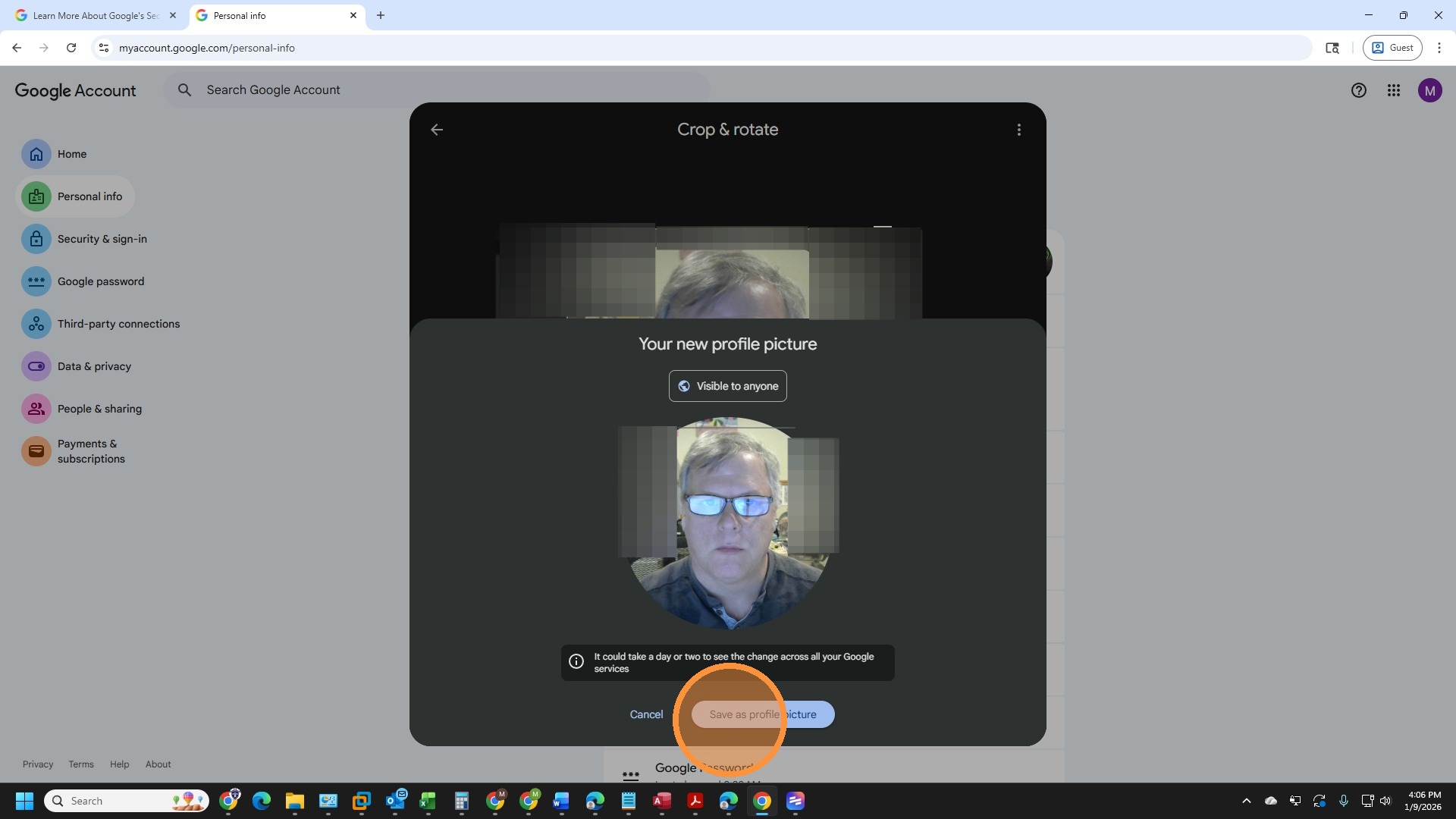 18. Click "Save as profile picture"