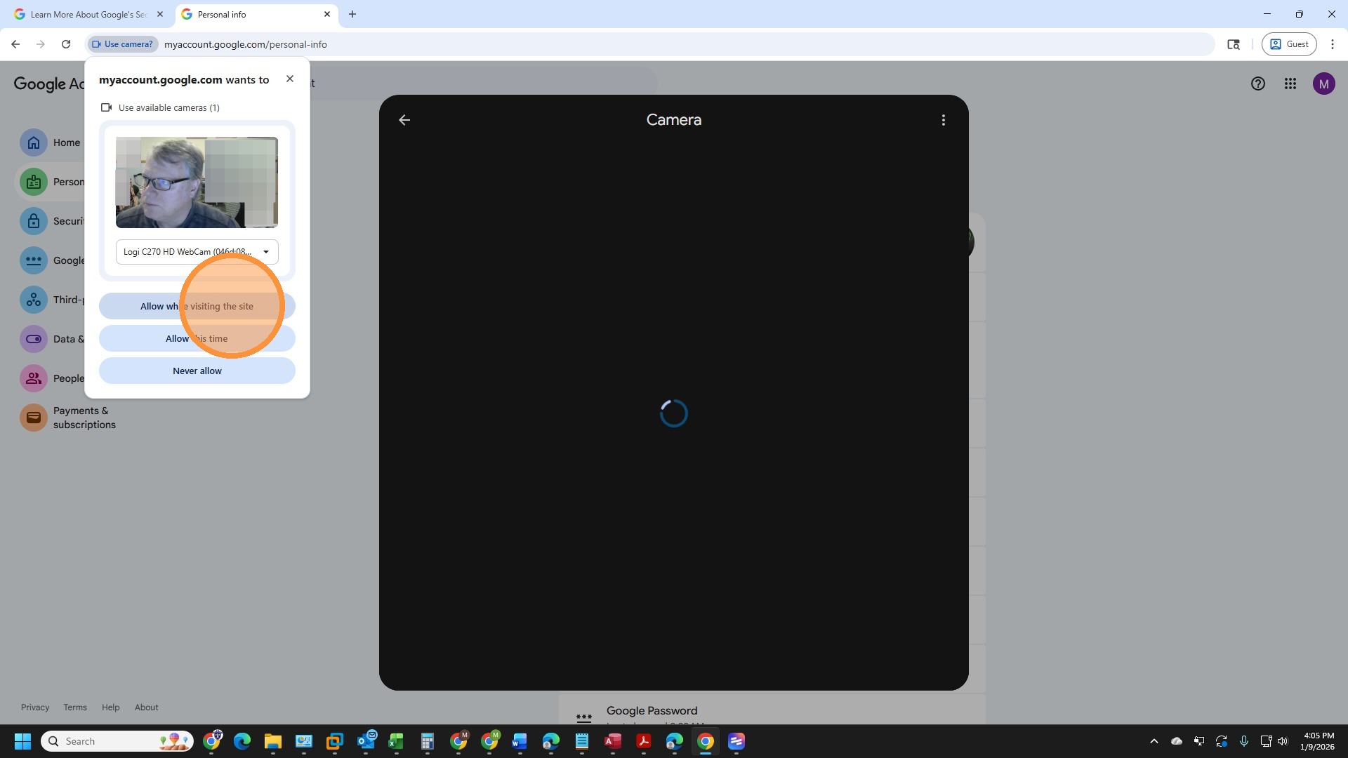 14. Click "Allow while visiting the site"