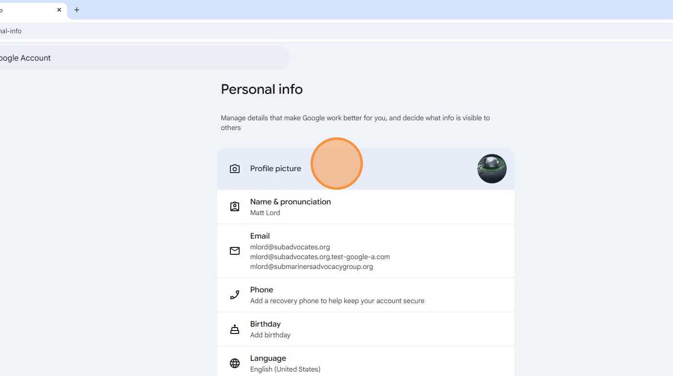 6. Click "Profile picture"