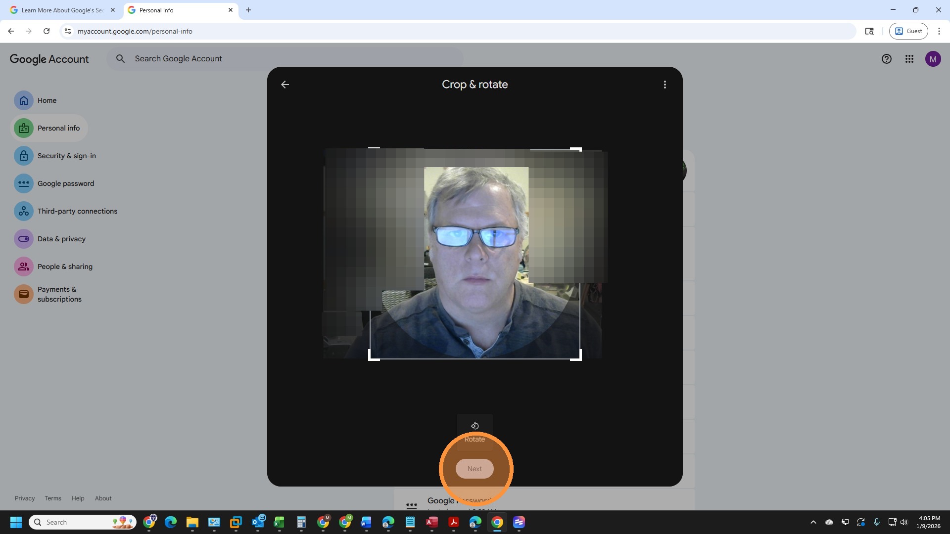 17. Once you are happy with the picture, click "Next"