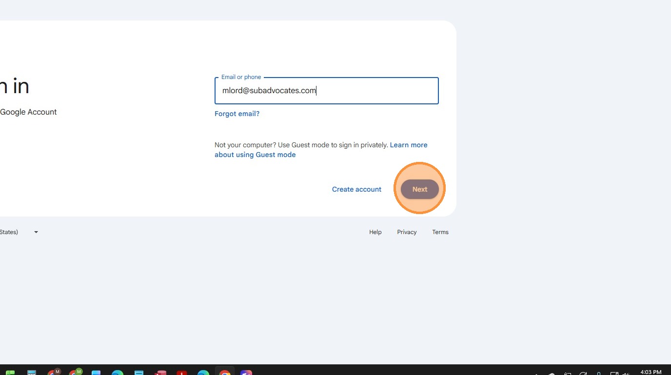 3. Enter your email address, then click "Next"